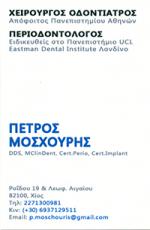 Σήμερα, ο Πέτρος έχει την έδρα του στη Χίο και εργάζεται επίσης σε ιδιωτικά ιατρεία στο Λονδίνο. Είναι διαπιστευμένος από την Ευρωπαϊκή Ομοσπονδία Περιοδοντολογίας και ασχολείται αποκλειστικά με περιστατικά Περιοδοντολογίας και Οδοντικών Εμφυτευμάτων.